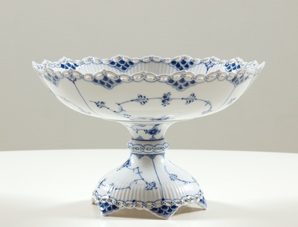 Blue Fluted “Full Lace” Large compote